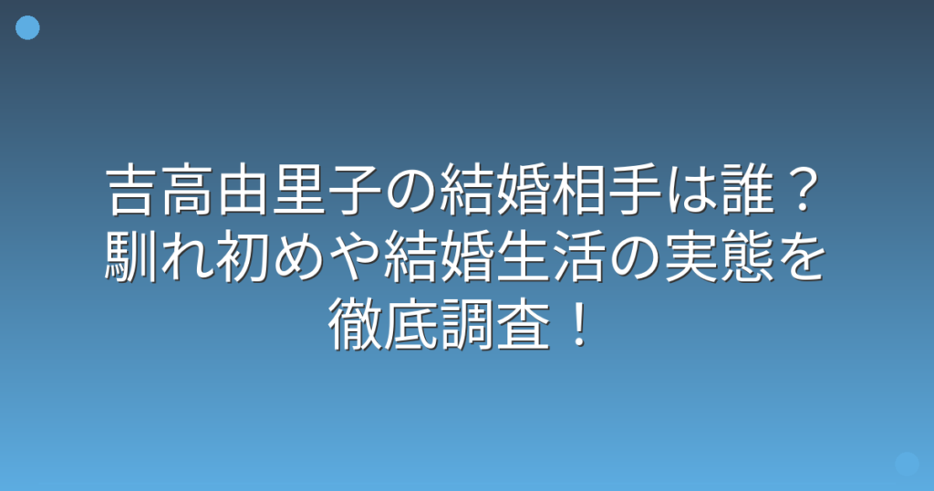 吉高由里子の結婚相手は誰?馴れ初めや結婚生活の実態を徹底調査!