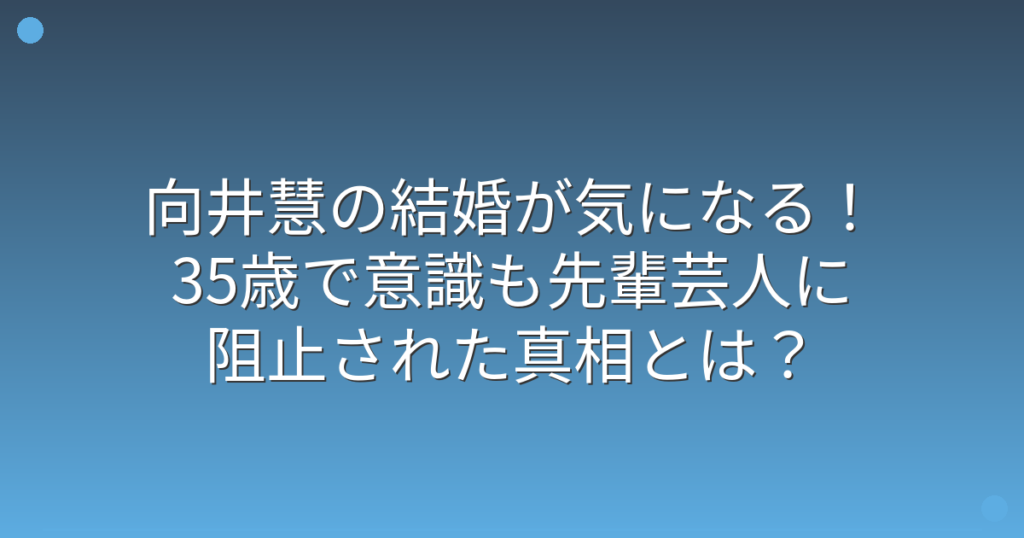 向井慧の結婚が気になる!35歳で意識も先輩芸人に阻止された真相とは?