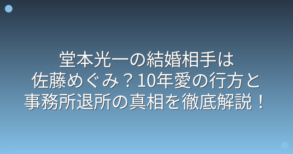 堂本光一の結婚相手は佐藤めぐみ?10年愛の行方と事務所退所の真相を徹底解説!