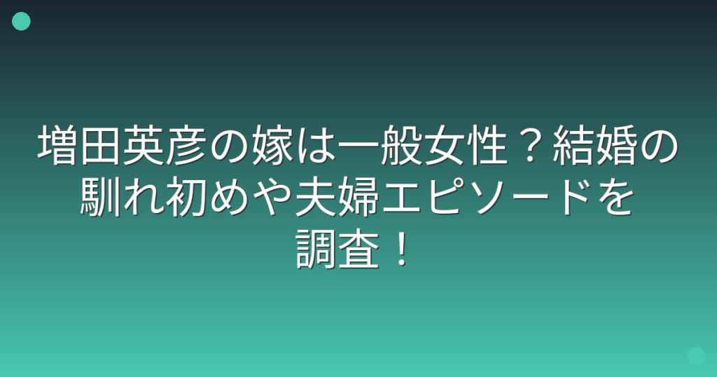 増田英彦の嫁は一般女性?結婚の馴れ初めや夫婦エピソードを調査!