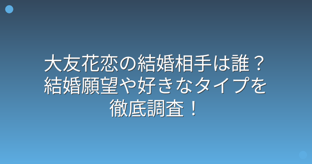 大友花恋の結婚相手は誰?結婚願望や好きなタイプを徹底調査!