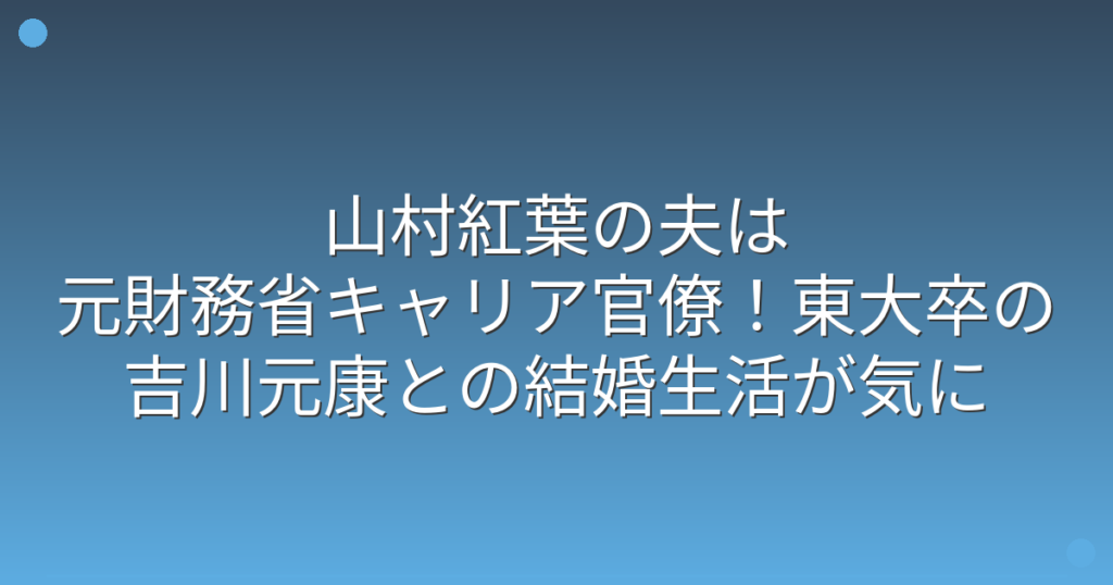 山村紅葉の夫は元財務省キャリア官僚!東大卒の吉川元康との結婚生活が気になる!