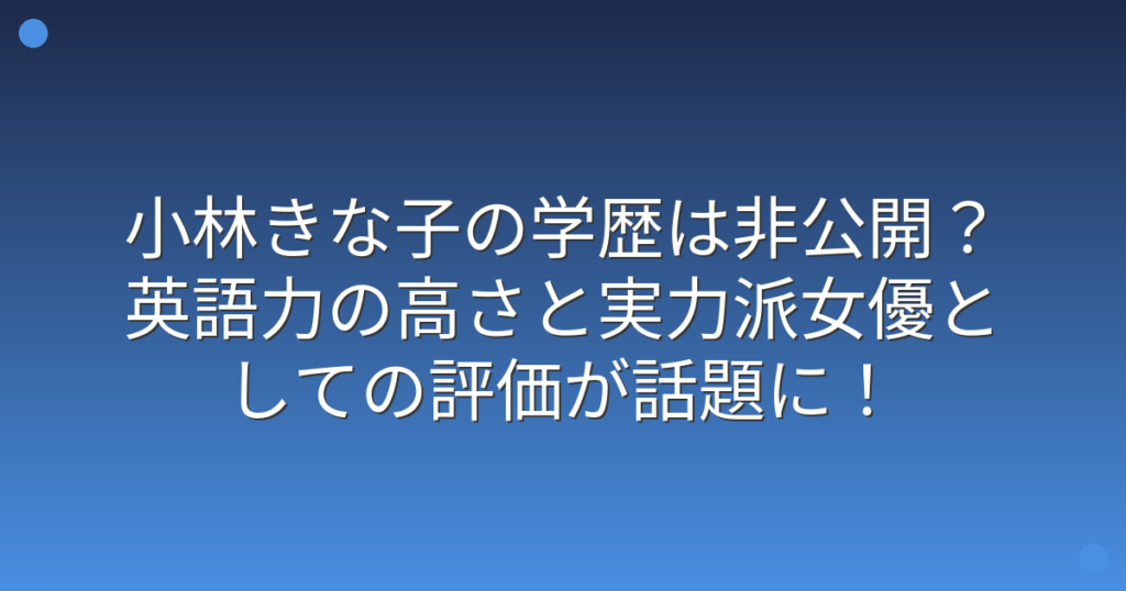 小林きな子の学歴は非公開?英語力の高さと実力派女優としての評価が話題に!