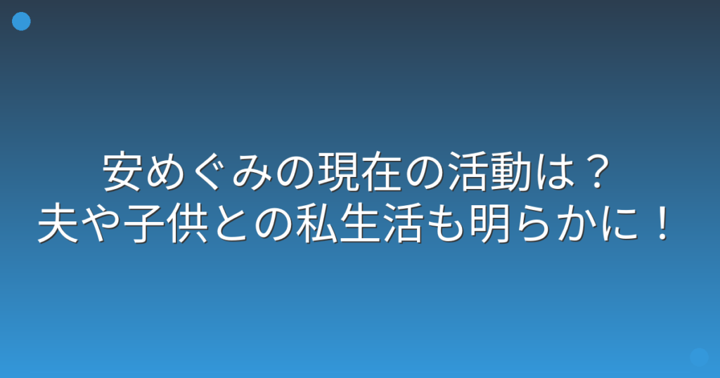 安めぐみの現在の活動は?夫や子供との私生活も明らかに!
