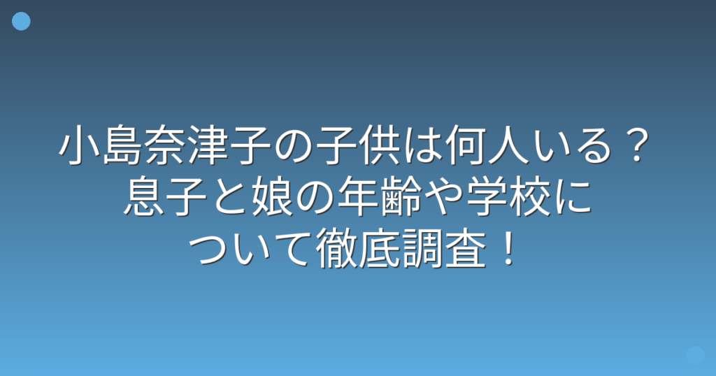 小島奈津子の子供は何人いる?息子と娘の年齢や学校について徹底調査!