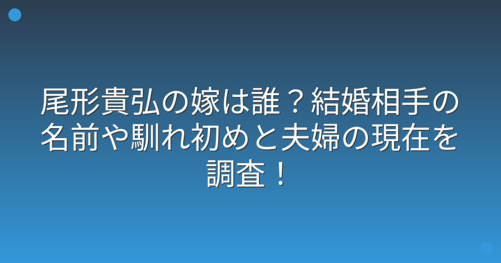 尾形貴弘の嫁は誰?結婚相手の名前や馴れ初めと夫婦の現在を調査!