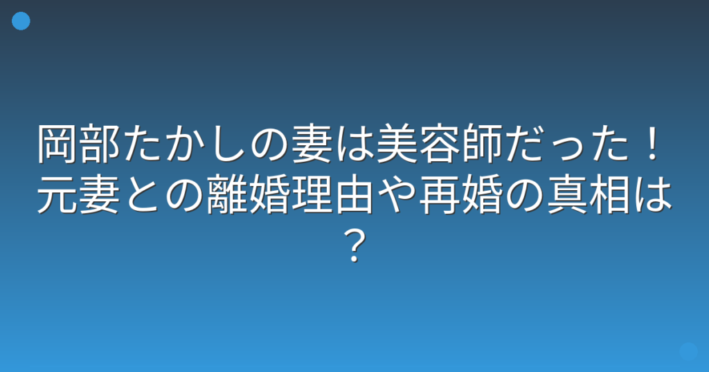 岡部たかしの妻は美容師だった!元妻との離婚理由や再婚の真相は?