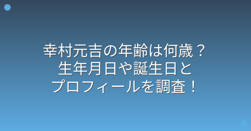幸村元吉の年齢は何歳?生年月日や誕生日とプロフィールを調査!