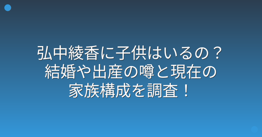 テレビ朝日の人気アナウンサー・弘中綾香さんに子供がいるのか、ファンの間で話題になっていますね。 バラエティ番組での活躍や明るいキャラクターで人気の弘中綾香さんですが、プライベートについて気になる方も多いのではないでしょうか。 そこで今回は... -