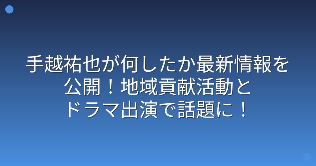 手越祐也が何したか最新情報を公開!地域貢献活動とドラマ出演で話題に!