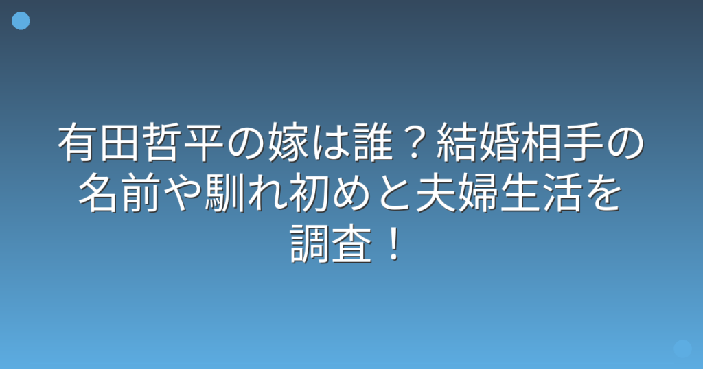 有田哲平の嫁は誰?結婚相手の名前や馴れ初めと夫婦生活を調査!