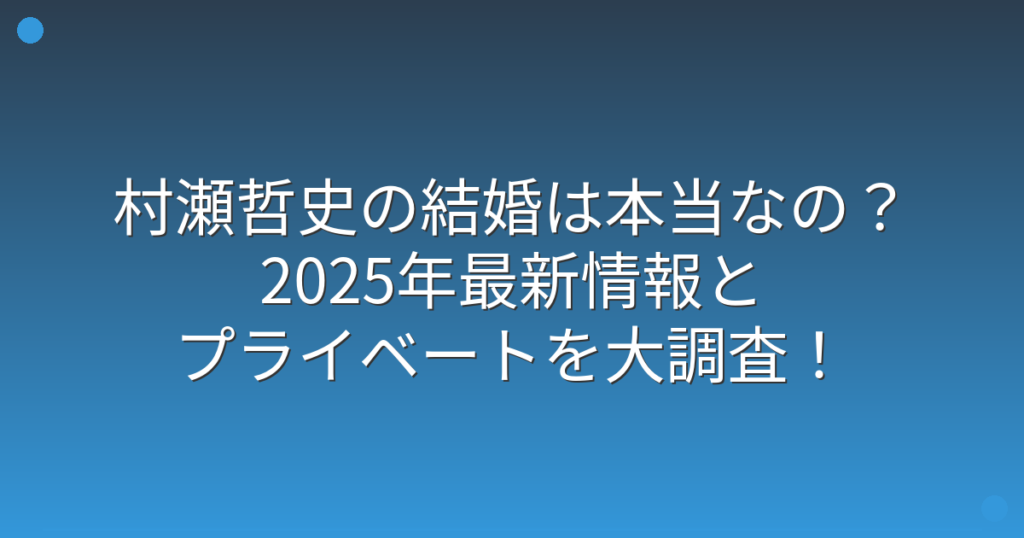 村瀬哲史の結婚は本当なの?2025年最新情報とプライベートを大調査!