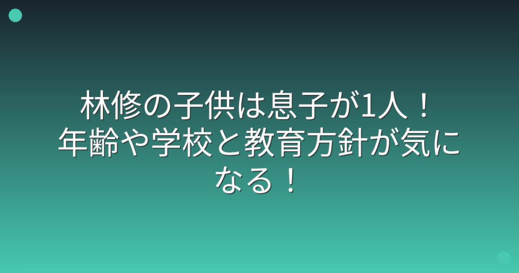林修の子供は息子が1人!年齢や学校と教育方針が気になる!