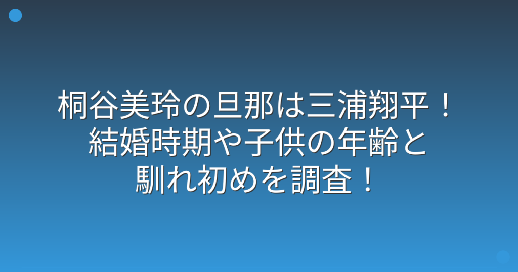 桐谷美玲の旦那は三浦翔平!結婚時期や子供の年齢と馴れ初めを調査!