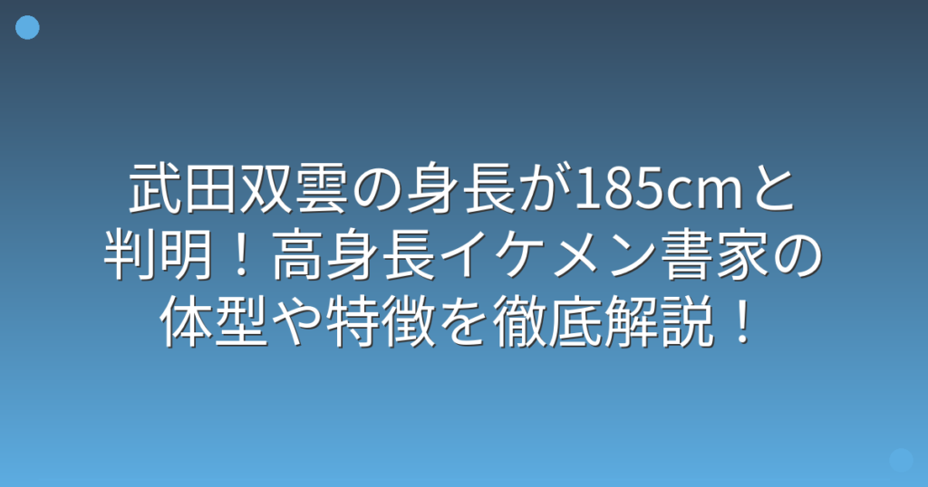 書道家として活躍する武田双雲さんの身長が話題になっていますね。 個展やメディア出演で目にする機会が多い武田双雲さんですが、その高身長な体型が注目を集めています。 そこで今回は、武田双雲さんの身長や体型について、詳しく見ていきましょう! 【武...