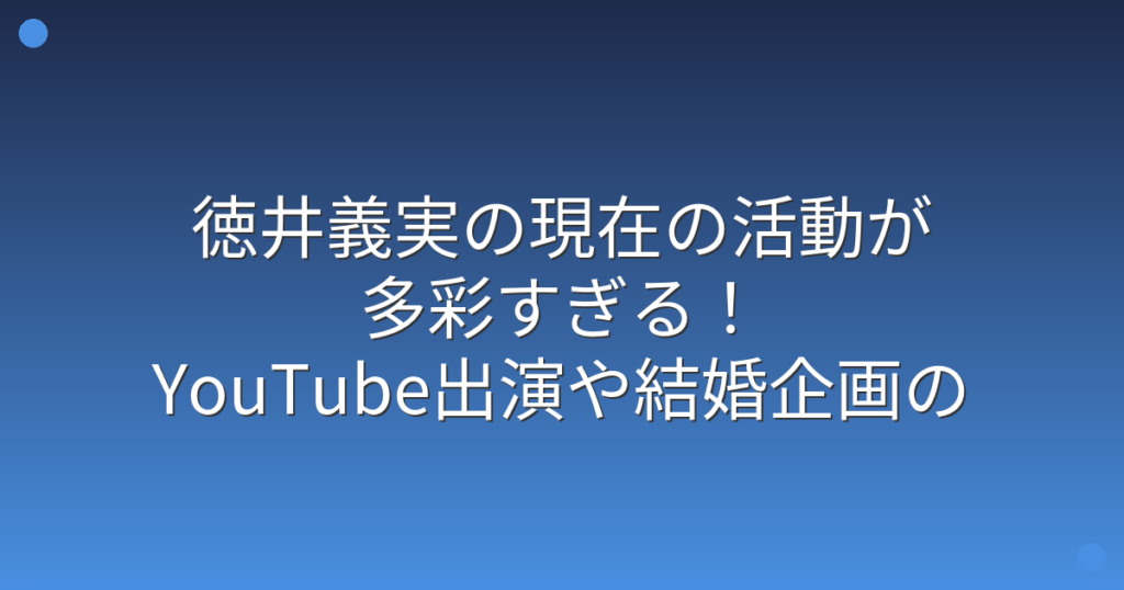 徳井義実の現在の活動が多彩すぎる!YouTube出演や結婚企画の近況が明らかに!