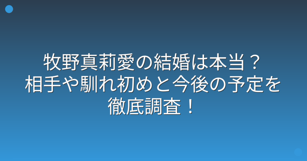 牧野真莉愛の結婚は本当?相手や馴れ初めと今後の予定を徹底調査!