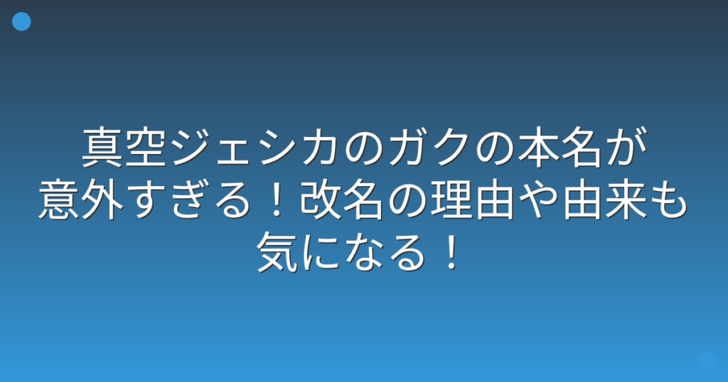 真空ジェシカのガクの本名が意外すぎる!改名の理由や由来も気になる!
