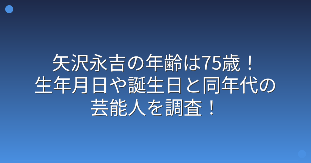 矢沢永吉の年齢は75歳!生年月日や誕生日と同年代の芸能人を調査!