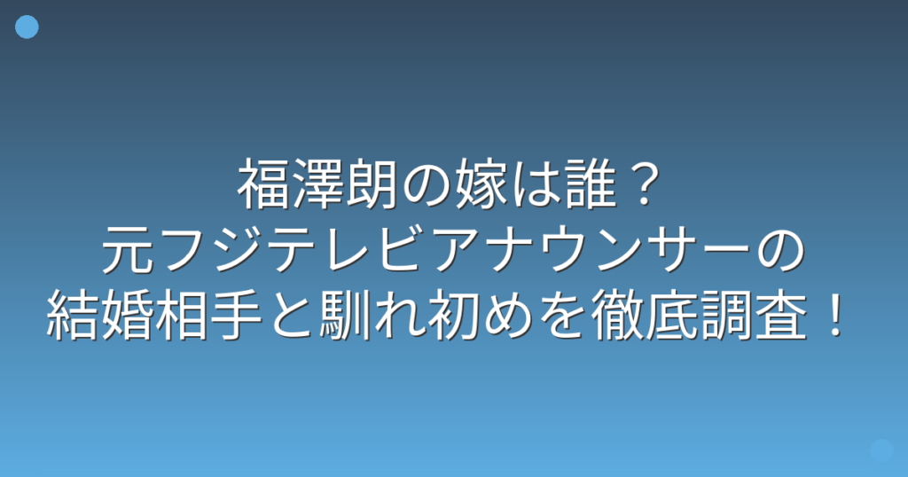 福澤朗の嫁は誰?元フジテレビアナウンサーの結婚相手と馴れ初めを徹底調査!