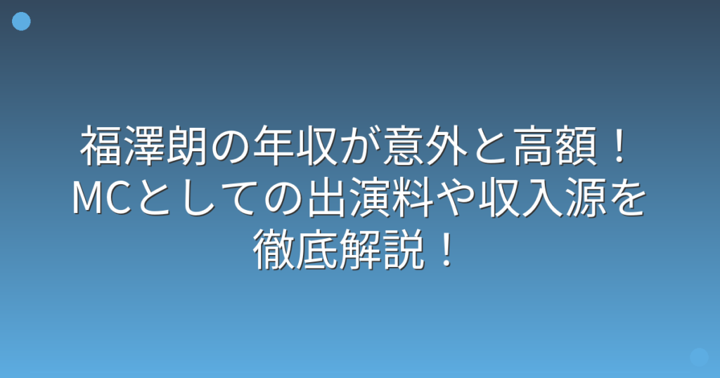 福澤朗の年収が意外と高額!MCとしての出演料や収入源を徹底解説!