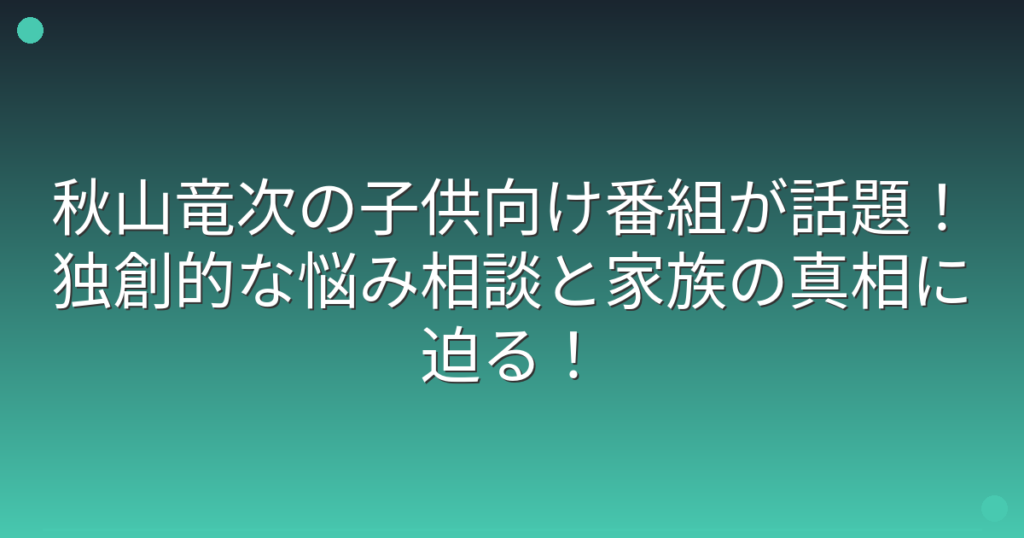 秋山竜次の子供向け番組が話題!独創的な悩み相談と家族の真相に迫る!