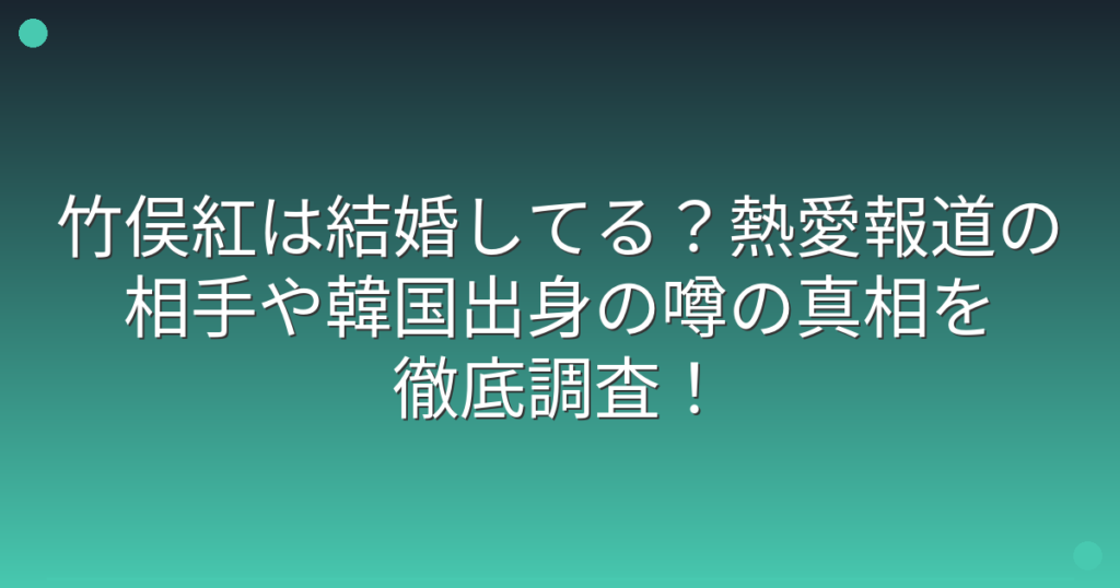 竹俣紅は結婚してる?熱愛報道の相手や韓国出身の噂の真相を徹底調査!
