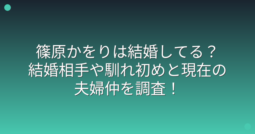 篠原かをりは結婚してる?結婚相手や馴れ初めと現在の夫婦仲を調査!
