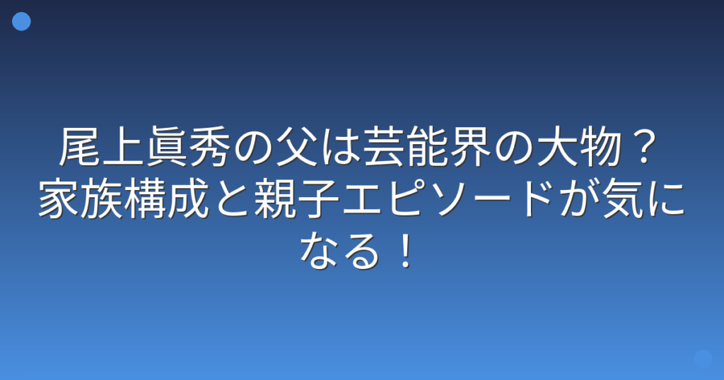 尾上眞秀の父は芸能界の大物?家族構成と親子エピソードが気になる!