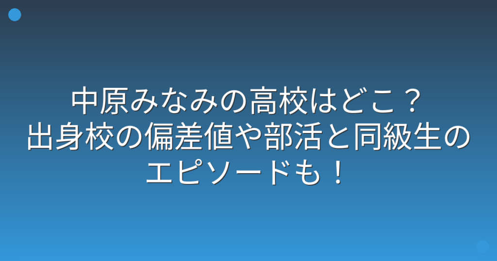 中原みなみの高校はどこ?出身校の偏差値や部活と同級生のエピソードも!