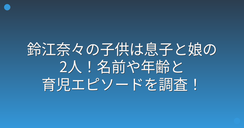 鈴江奈々の子供は息子と娘の2人!名前や年齢と育児エピソードを調査!