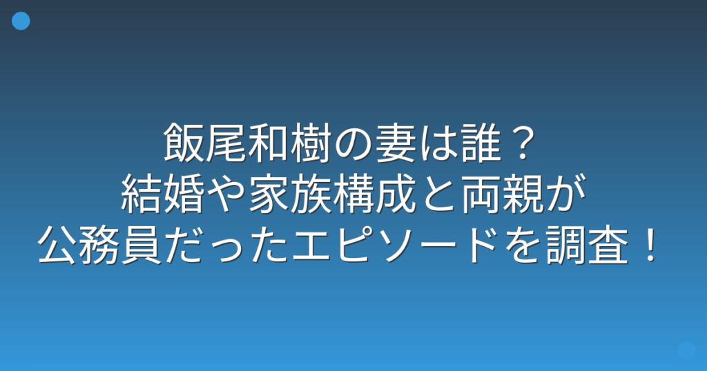 飯尾和樹の妻は誰?結婚や家族構成と両親が公務員だったエピソードを調査!