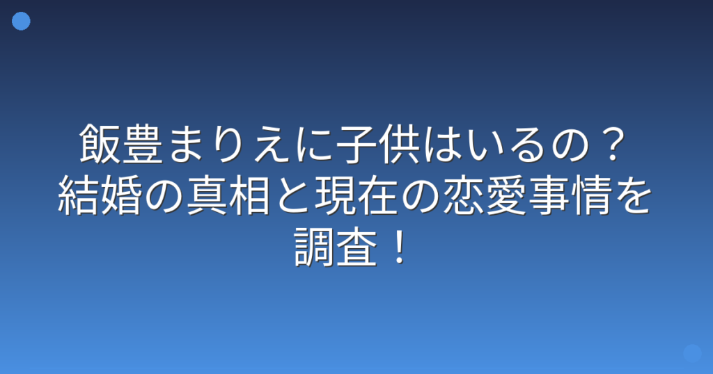 女優として活躍する飯豊まりえさんに子供がいるのか、ファンの間で話題になっていますね。 清楚な美貌と演技力で人気を集める飯豊まりえさんですが、プライベートについて気になる方も多いのではないでしょうか。 そこで今回は、飯豊まりえさんに子供がい...