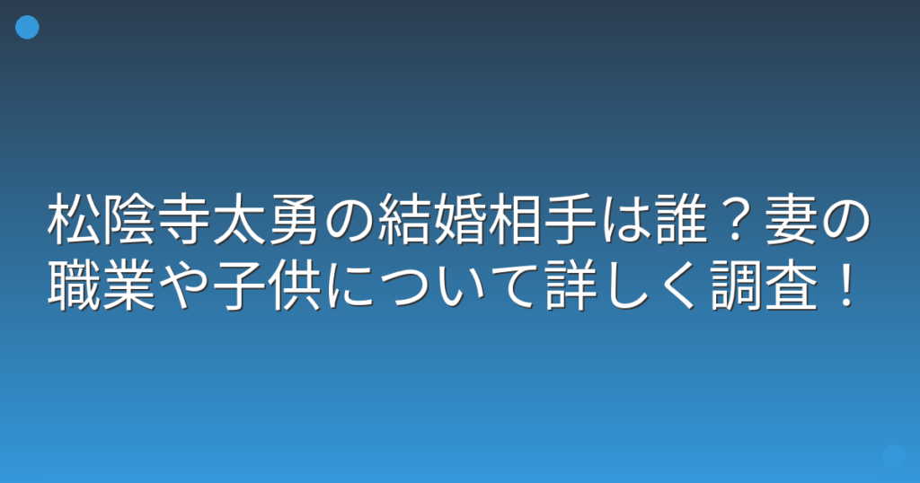 松陰寺太勇の結婚相手は誰?妻の職業や子供について詳しく調査!