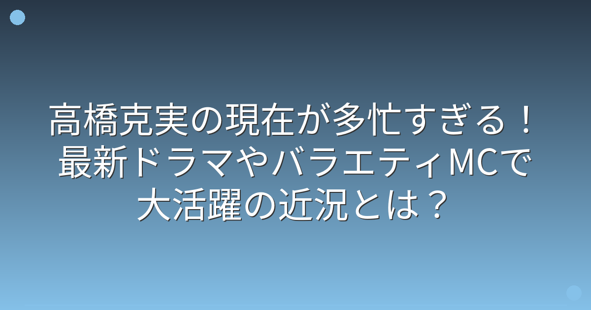 そこで今回は、高橋克実さんの現在の活動状況や最新の出演作品、健康状態について詳しく見ていきましょう!