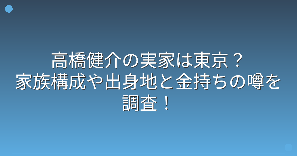 俳優として活躍する高橋健介さんの実家について、ファンの間で関心が高まっていますね。