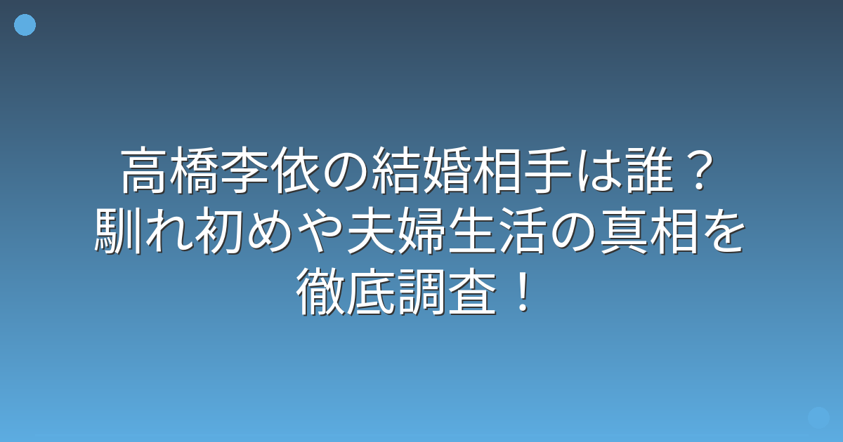 高橋李依の結婚相手は誰?