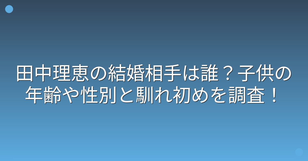 そこで今回は、田中理恵さんの結婚相手や子供、そして馴れ初めについて詳しく見ていきましょう!