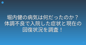 爆笑問題の田中裕二さんの病気について、気になっている方も多いのではないでしょうか。
