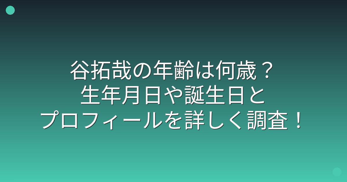 最近注目を集めている谷拓哉さんですが、実際の年齢や生年月日について気になっている方も多いのではないでしょうか。