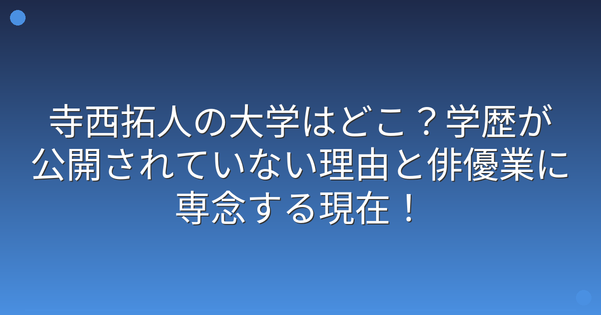寺西拓人さんの大学名や学歴については、現時点で一切公開されておらず、本人も公表していない状況です。