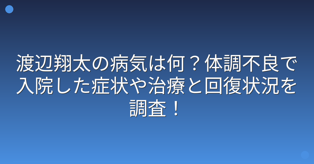 そこで今回は、渡辺翔太さんの病気や体調不良の詳細、入院の有無や症状、そして現在の回復状況について詳しく見ていきましょう!