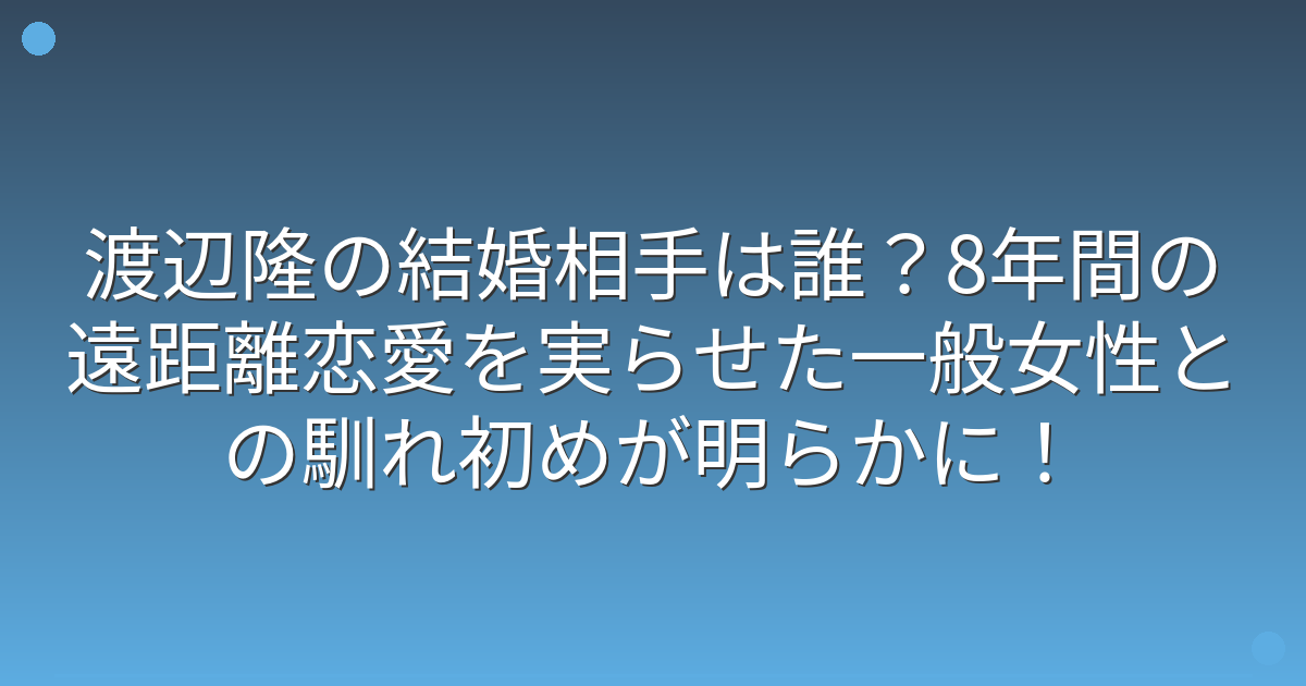 渡辺隆の結婚相手は一般女性!8年間の遠距離恋愛を経て入籍