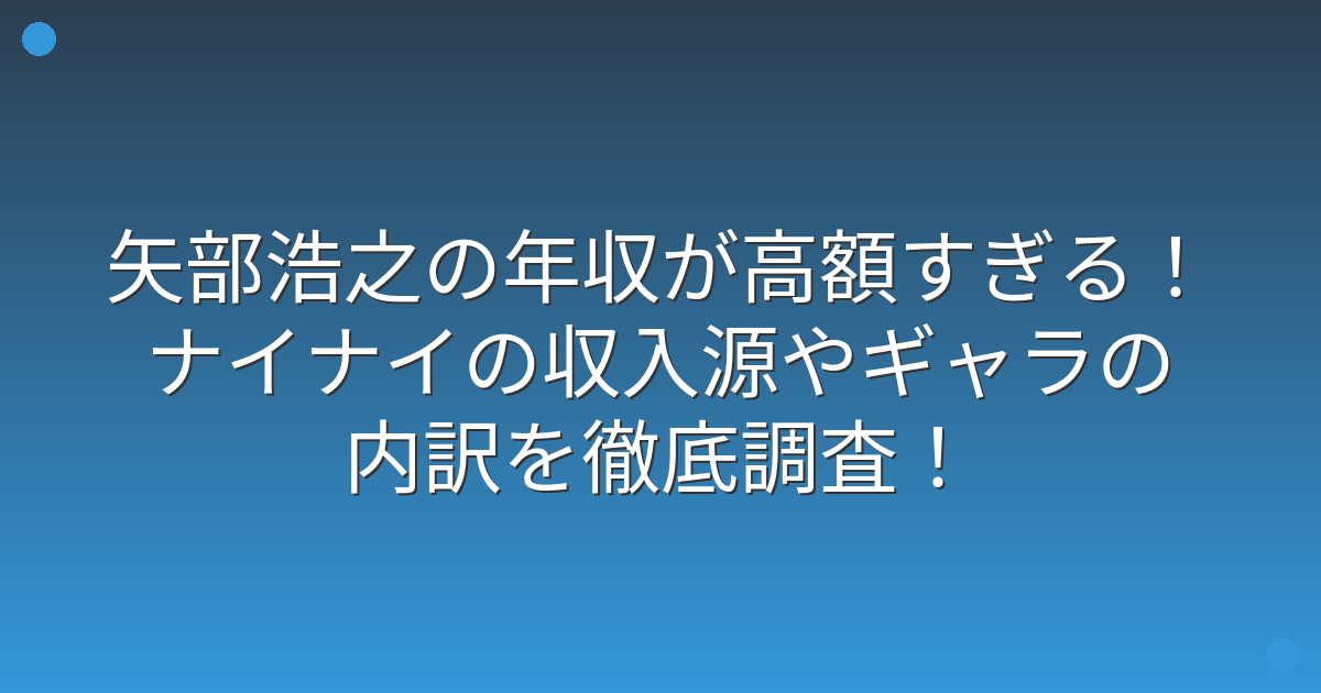 矢部浩之さんの年収は推定で2億円から3億円程度で、テレビ番組出演料やCM契約料などが主な収入源となっています。