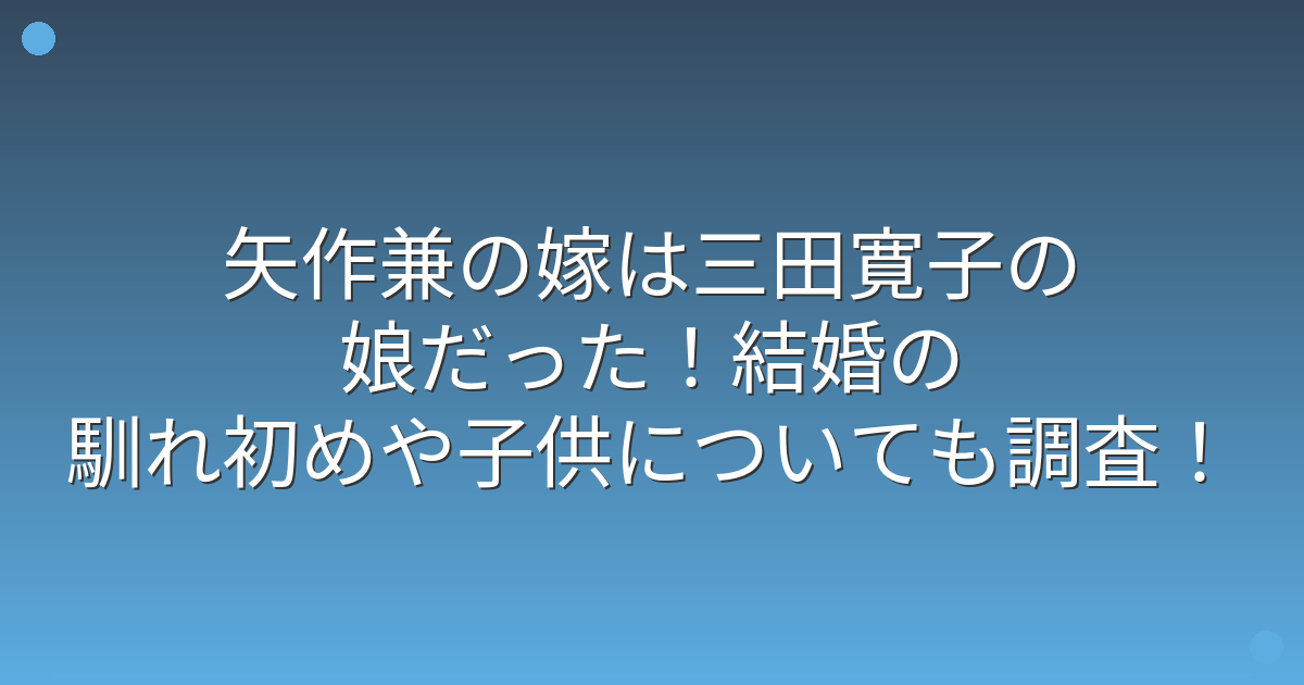 矢作兼さんの嫁は、なんと元女優・三田寛子さんの娘であることが知られています。