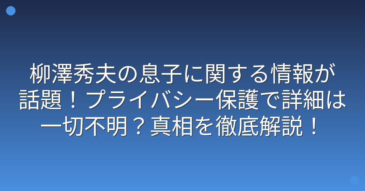 柳澤秀夫さんの息子については、プライバシー保護の観点から、ほとんどの情報が非公開となっています。