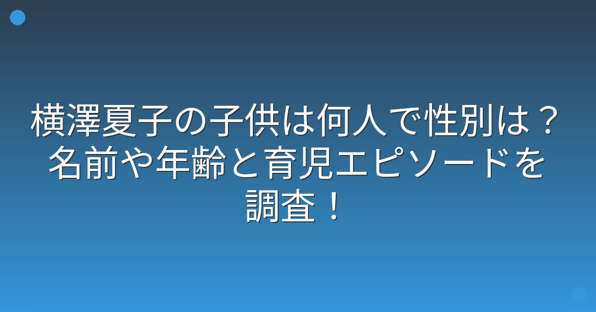 結婚後、母親としての一面も見せている横澤夏子さんですが、お子さんは何人いるのか、性別や年齢など気になる方も多いのではないでしょうか。