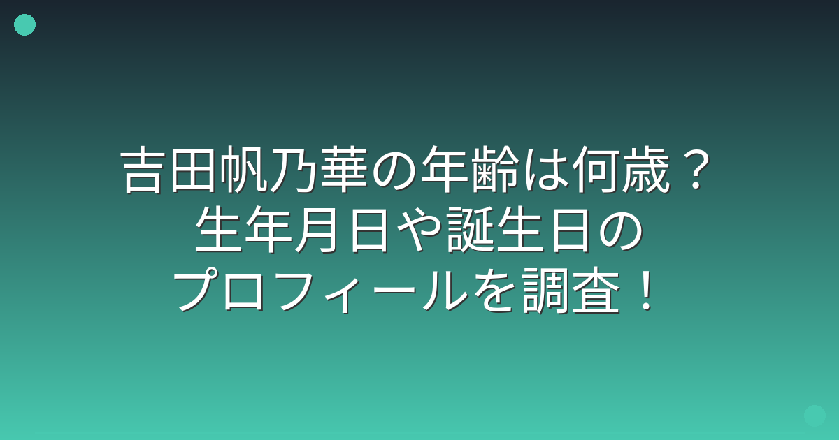 最近注目を集めている吉田帆乃華さんですが、実際の年齢や生年月日について気になっている方も多いのではないでしょうか。